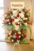 TOPスタンド花 スタンド花☆ダブル・紅白☆ 価格: ¥33,000 (税抜 ¥30,000) 販売期間: 数量: 個 在庫: 在庫あり 在庫 在庫あり 返品についての詳細はこちら 赤と白の組み合わせです。高貴なコチョウランやユリ、葉物をバランス良くあしらい、ボリューム感を出しています。赤と白の組み合わせは和の感じでとても日本的です。とっておきのお祝いにぴったりなスタンド花です。